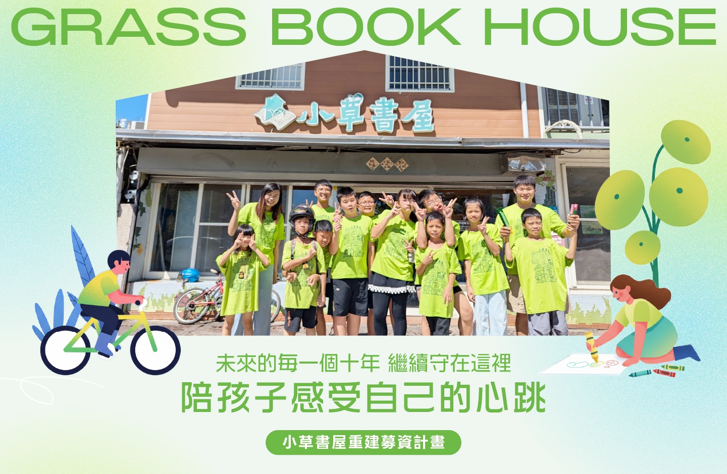 「小草」是生活在社會角落的孩子,就像是長在牆角的小草,不起眼的他們總是被大家忽略,但小草的生命堅韌樸實,只要有夢想灌溉有一天小草也會開出繽紛的花朵,成為城市裡的美景。 「小草書屋」和「青草職能學苑」提供國小學童(小草)及國、高中青少年(青草)課後陪伴及職能培育計畫。有老師、社工和志工們陪伴孩子唸書、指導課業,跟孩子談心,陪伴孩子們成長,擁有力量改變未來。
