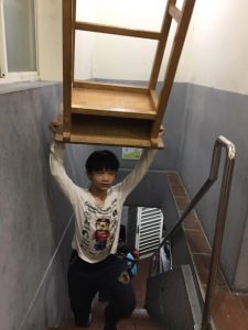 2020-03-30 書屋日常 書屋的桌椅多是向各界善心人士所募得,然而每天小草青草們在教室上課、打打鬧鬧, 桌面跟抽屜常常「屍首分家」,搞笑又危險 最近剛好附近有愛心單位,提供我們二手課桌椅, 書屋的老師們在大熱天一張張搬運,並帶領孩子們將所有桌椅都用漂白水消毒兩遍! 看到嶄新乾淨的桌椅,上課心情都好了起來呢 好好愛惜書屋的桌椅,好好愛護書屋的孩子! 標籤: 二手課桌椅 Continue Reading Previous Post我畫我觀察,水果畫個展| 書屋日常Next Post連假剩一天了!我們繼續一起宅在家吧!| 書屋日常 You Might Also Like 幸福存摺的價值-不是能不能-而是肯不肯 | 書屋日常 2018-09-12 三兄弟的故事 | 書屋日常 2018-09-12 不給糖,就搗蛋的日子 | 書屋日常 2020-10-31