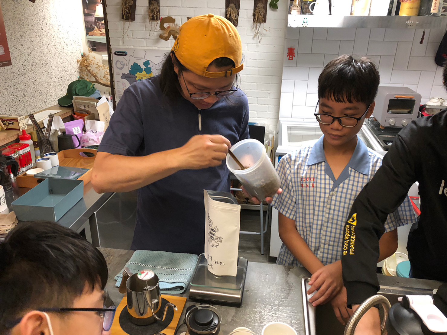 學生們也上過好幾次咖啡課程,每次的咖啡課程老闆都會準備不同的學習內容給學生嘗試,這學期學生們除了複習原本就已經學會的手沖咖啡技能外,老闆更著重在咖啡風味的實驗與紀錄,希望學生可以藉由這些實驗過程,能夠更深入的了解手沖咖啡的魅力所在。